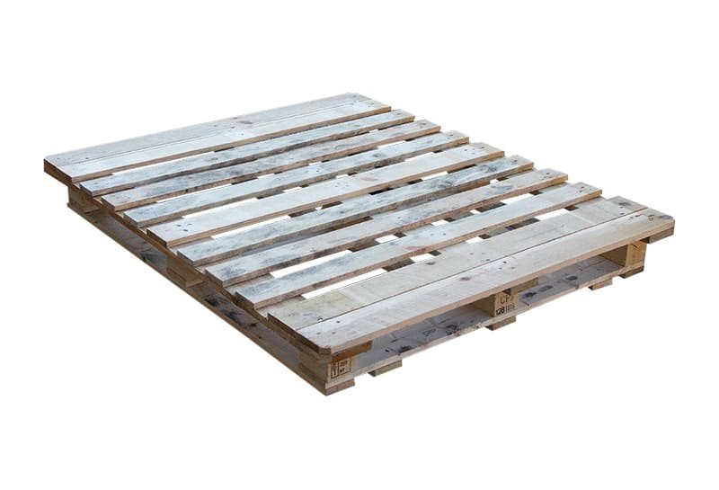 This reconditioned wood CP7 pallet is 110cm x 130cm in size and is equipped with a cross deck. This standardised pallet is frequently used in the chemical sector, both new and reconditioned.